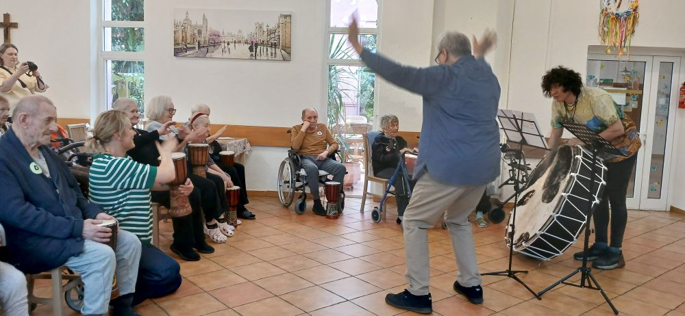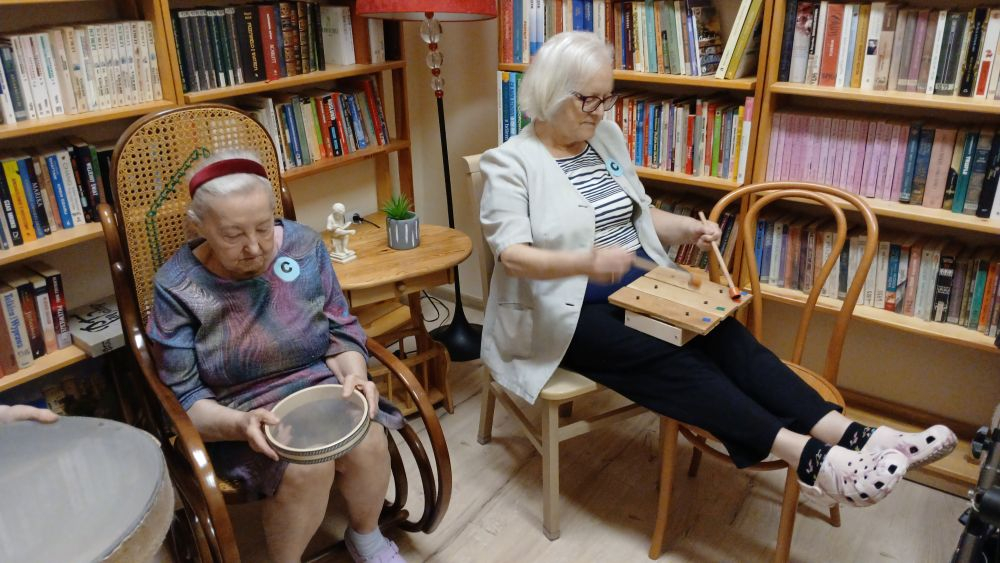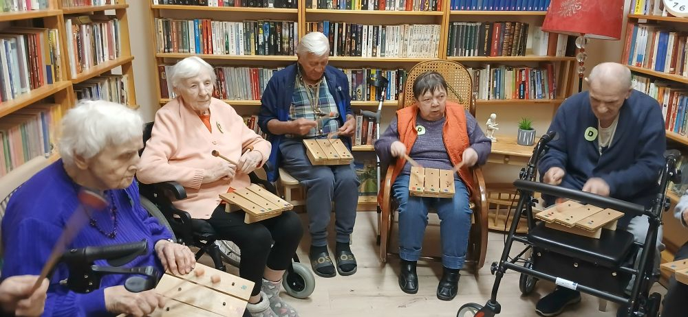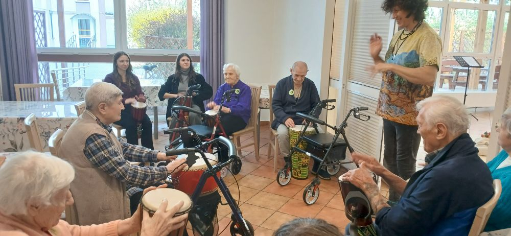 16 kwietnia odbyły się w naszym Domu warsztaty „Czytanie dźwiękiem”, zorganizowane przez Polskie Towarzystwo Muzyki Współczesnej. Warsztaty odbyły się pod kierunkiem 4 Artystów muzyki: Małgorzaty Kołcz – kontrabasistki, Izy Kowalewskiej – piosenkarki, muzykoterapeutki i psychologa, Jarosława Siwińskiego – kompozytora i pianisty oraz Ryśka Bazarnika – perkusisty. Zajęcia dedykowane były wszystkim tym, którzy lubią muzykować. W pierwszej części spotkania, Mieszkańcy podzieleni zostali na cztery grupy, które kolejno pracowały z każdym z Muzyków. W części drugiej warsztatów odbył się wspólny koncert, podczas którego czytane były wybrane teksty literackie, specjalnie przygotowane w formie partytury tekstowej. Całe nasze spotkanie było niezwykłe, radosne i twórcze. Mieszkańcy bawili się znakomicie.