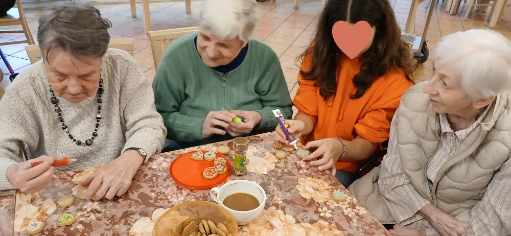 Młodzież z Prywatnej Szkoły Podstawowej Pro Beanus w Warszawie, jak co roku, przybyła do naszego Domu, aby razem z Seniorami spędzić przedświąteczny czas, dekorując pierniczki, śpiewać kolędy i rozmawiać o świętach, tradycjach i wspomnieniach. Nasi Seniorzy czekali z niecierpliwością na Młodzież, która prócz pierniczków przyniosła doskonały humor, uśmiech i dobre słowo dla każdego. Wspólne rozmowy i pracę, zakończył koncert kolęd w wykonaniu naszych Gości. Był to niezapomniany dzień, zwiastujący zbliżające się święta.
