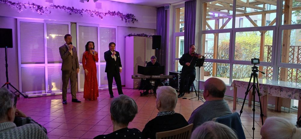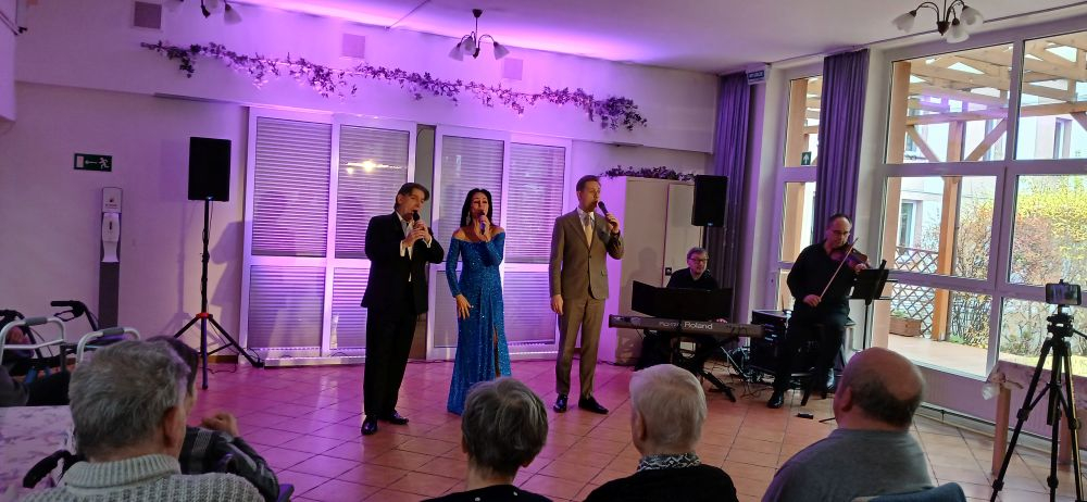 16 listopada mieliśmy ogromną przyjemność, gościć w naszym Domu, wspaniałych Artystów z Muzycznego Teatru Wędrownego Maggie Tunkiewicz – Zakrzewskiej. Koncert nosił tytuł „Powróćmy jak za dawnych lat” i rzeczywiście przeniósł nas on do zupełnie innego świata, świata wspomnień, refleksji i radości. Artyści prezentowali niebywały kunszt wokalno – aktorski, czym zachwycili całą publikę. Piosenki, które wykonali żyją w nas już na zawsze: Już nie zapomnisz mnie, Każdemu wolno kochać.... tanga, walce, slow-foxy. Przenieśliśmy się w czasie do krainy elegancji i piękna, oraz Miłości, która wszystko wybaczy…