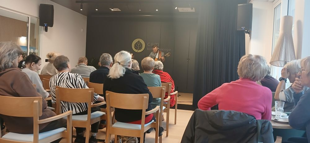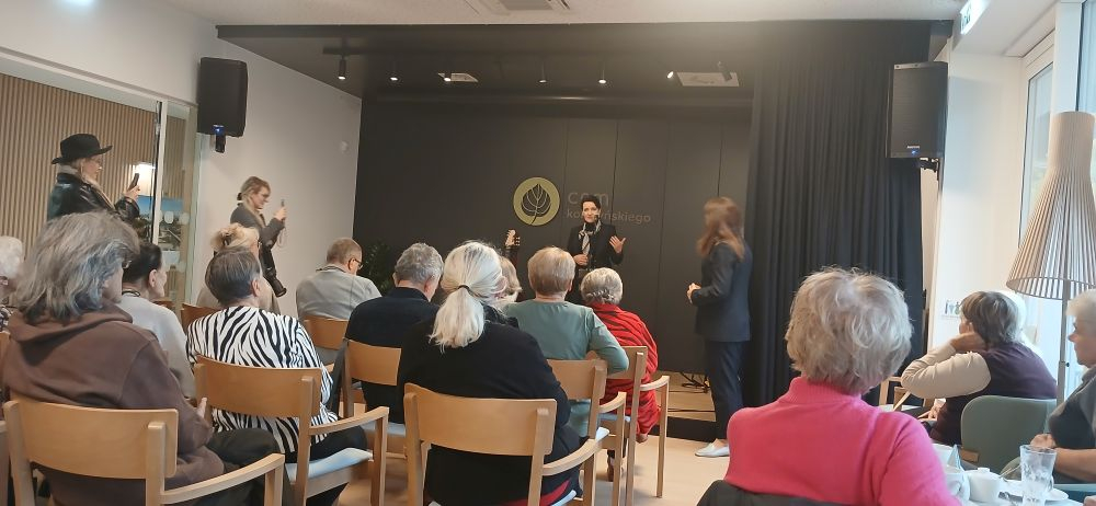 24 października grupa naszych Seniorów wybrała się na recital piosenek do tekstów Agnieszki Osieckiej, w wykonaniu Daniela Zakościelnego – „Zielono mi”, który odbył się w Klubokawiarni Centrum Aktywności Międzypokoleniowej przy Korotyńskiego. W tym dniu, choć strasznie padało, nikt nie zrezygnował z udziału w koncercie i była to bardzo dobra decyzja, bo koncert okazał się wspaniałym wydarzeniem, które przywołało wiele wspomnień. Wszak piosenki z tekstami Osieckiej, które śpiewała Maryla Rodowicz, Kalina Jędrusik czy Czerwone Gitary, zna chyba każdy. Tak piękne, wzruszające chwile warto spędzać w gronie innych osób, które mają podobne przeżycia i wspomnienia. Gościem recitalu w CAM, była też Minister do spraw Polityki Senioralnej Marzena Okła – Drewnowicz, która w chwili przerwy zapewniła obecnych, że sprawy Seniorów leżą jej na sercu. Oprócz miłych doznań muzycznych, Seniorzy mogli napić się kawy, herbaty i zjeść pyszne ciastko. Choć deszczowy, był to radosny dzień dla naszych Podopiecznych.