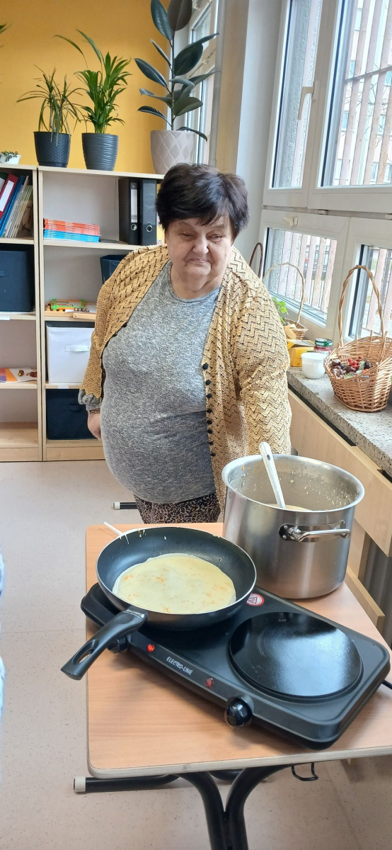 31 października w ramach projektu „Od Juniora dla Seniora” wybraliśmy się na warsztaty kulinarne do Szkoły Podstawowej z Oddziałami Integracyjnymi nr 280, im. Tytusa Chałubińskiego w Warszawie. Na warsztatach przygotowywaliśmy smaczne naleśniki z dynią. Nasze Seniorki i Uczniowie mieszali ciasto, a następnie smażyli pyszne naleśniki. W oczekiwaniu na kolejną porcję smacznego naleśnika malowaliśmy wspólnie z Dziećmi jesienne obrazki, a kiedy wszyscy smakowicie pojedli, zorganizowaliśmy konkurs piosenek, który przerodził się w zabawę taneczną. Dzień ten prócz nowych miłych znajomości pozwolił nam na krótką chwilę zapomnienia o codzienności wśród radosnych dziecięcych uśmiechów.