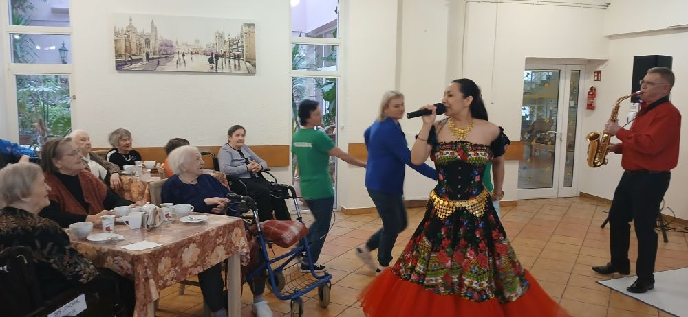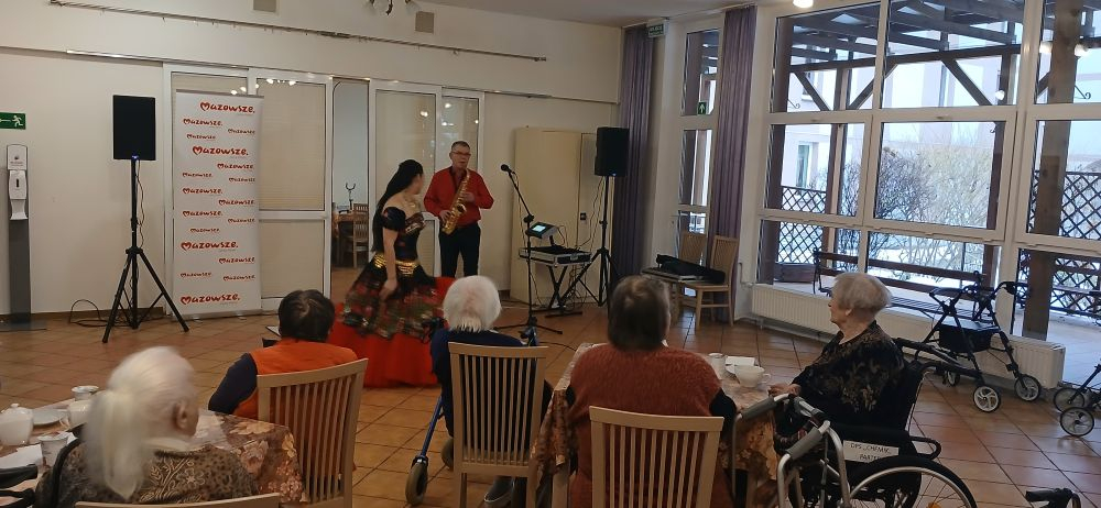 12 lutego, odbył się w naszym Domu wspaniały koncert muzyki Romskiej. Dla naszych Mieszkańców wystąpiła znakomita piosenkarka, tancerka, choreograf i jedna z największych gwiazd romskiej sceny muzycznej – Patrycja Runo, z towarzyszeniem Marka Lesińskiego. Partnerem wydarzenia był Samorząd Województwa Mazowieckiego. Nie bez przyczyny Pani Patrycja została okrzyknięta Królową Cygańskiej Piosenki, bowiem jej występ był prawdziwie królewski, dopracowany w każdym szczególe. Piękny i kolorowy, pełen ekspresji i energii, porwał naszych Podopiecznych do tańca, a ci którzy nie mogli tańczyć, tupali nóżką, klaskali, machali rękoma i śpiewali razem z Artystką. Ten wyjątkowy koncert dostarczył nam niezapomnianych wrażeń. Jeszcze długo Mieszkańcy dyskutowali między sobą o tym niezwykłym koncercie.